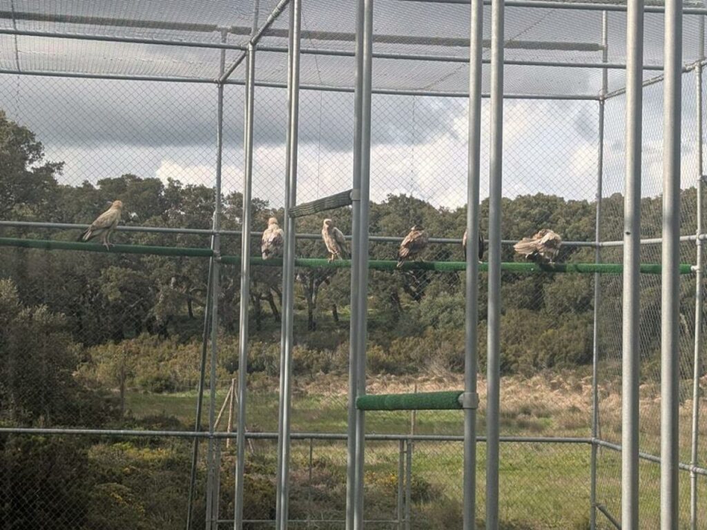 Durante el periodo previo a su liberación, los seis alimoches fueron cuidados y alimentados en un aviario del propio parque natural. Esta tarea fue realizada por técnicos de la Consejería en colaboración con voluntarios de la Sociedad Gaditana de Historia Natural, dentro de su Proyecto Necrófagas.