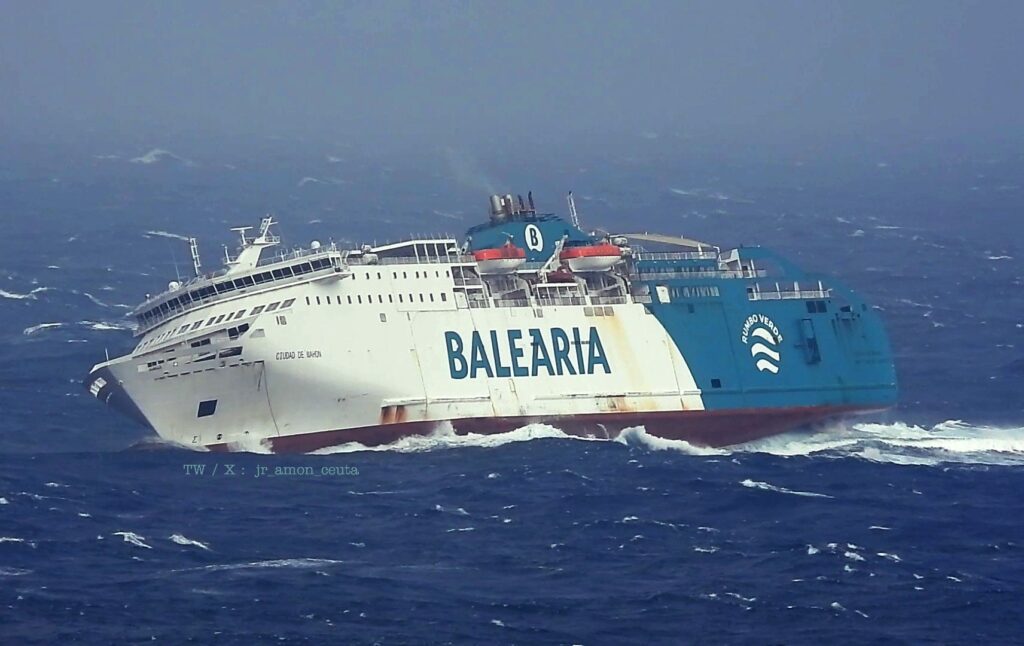 El incidente se produjo en una jornada especialmente compleja en el Estrecho de Gibraltar, marcada por la borrasca Emilia, que obligó a suspender la mayoría de las conexiones marítimas entre Ceuta y la Península, siendo el Ciudad de Mahón el único barco que mantuvo el servicio durante buena parte del día.