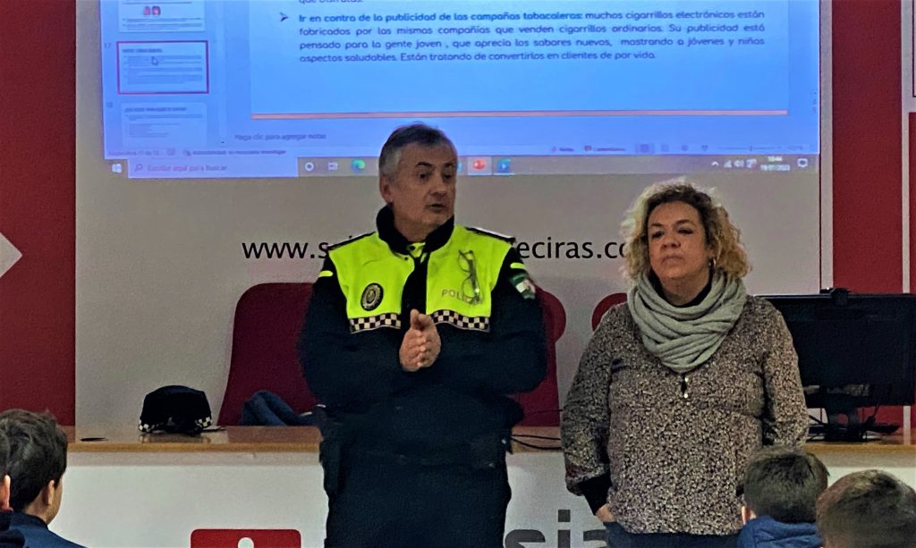 Esta iniciativa, que llevan a cabo en los centros de Educación Secundaria técnicas de Barrio Vivo, coordinadas por Silvia Castellano, responsable del área de Prevención de la coordinadora, se integra en el convenio colaborativo firmado el pasado año entre el presidente de la coordinadora, Miguel Alberto Díaz, y el alcalde de Algeciras, José Ignacio Landaluce. En función de este acuerdo, Barrio Vivo y la Policía Local comparten experiencias y esfuerzos en la formación educativa en el ámbito preventivo del consumo de estas sustancias entre la población infanto-juvenil. Se trata de concienciar y sensibilizar a los jóvenes ante posibles adicciones.