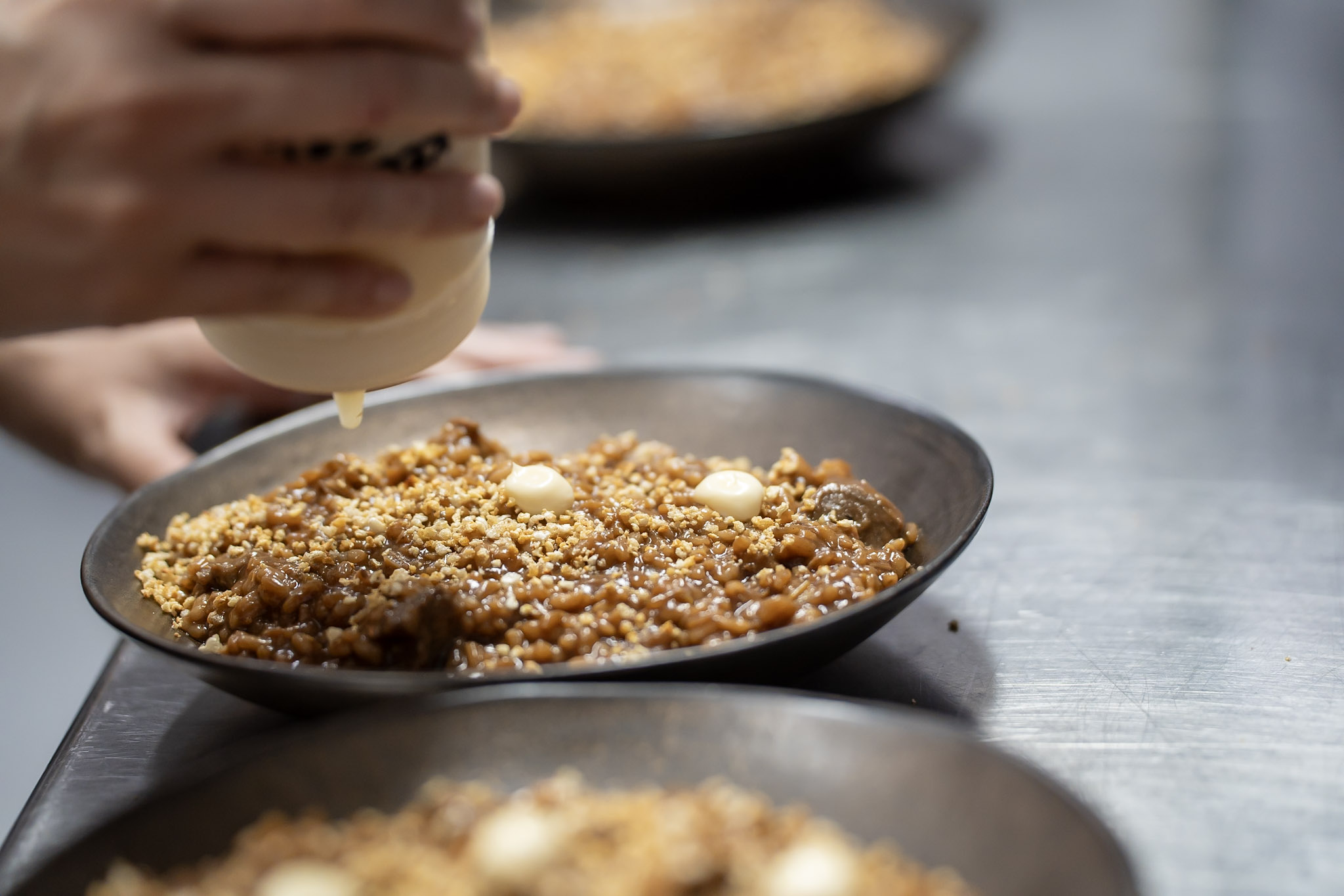 Arroz ibérico de presa y abanico con crujiente de su corteza