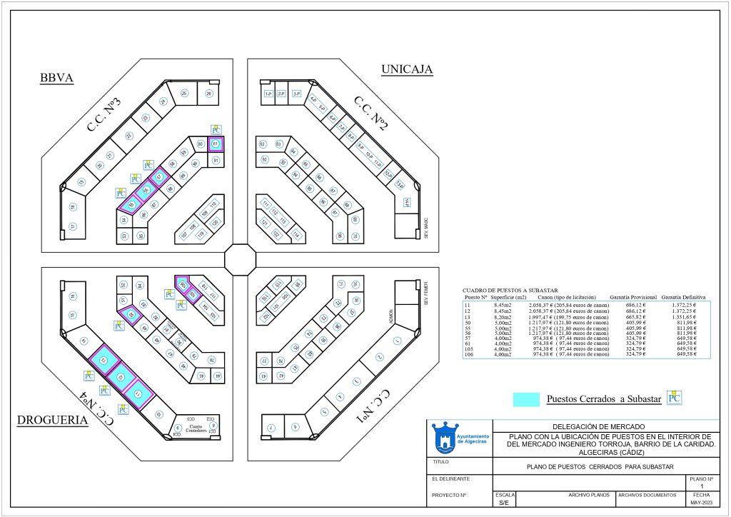 El Ayuntamiento de Algeciras ha puesto en marcha el proceso de concesión de diez puestos ubicados en el mercado de abastos “Ingeniero Torroja”, concretamente de las instalaciones con los números 11, 12, 13, 50, 55, 56, 57, 61 105 y 206.