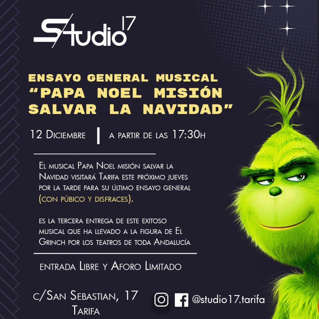 El musical Papa Noel misión salvar la Navidad visitará para su último ensayo general (con púbico y disfraces) visitará Tarifa este próximo jueves tarde, es la tercera entrega de este exitoso musical que ha llevado a la figura de El Grinch por los teatros de toda Andalucía. Evento patrocinado por la web tarifafueradetemporada.es