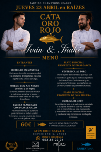 El restaurante Raízes acogerá este jueves 23 de abril la “Cata Oro Rojo”, un duelo gastronómico entre los chefs Iván Figuera e Iñaki García que ya ha desvelado su propuesta culinaria: un menú degustación centrado en la joya de la corona, el Atún Oro Rojo de Tarifa y en la riqueza de sus distintos cortes.