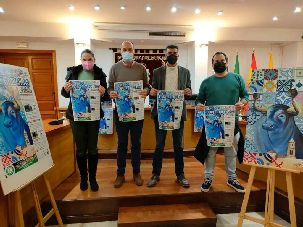 El alcalde de Los Barrios, Miguel Alconchel; el concejal de Festejos, Daniel Pérez Cumbre; y el presidente de la Peña Toro Embolao, Joaquín Gil, han presentado este mediodía en el salón de plenos el cartel del Toro Embolao y todos los detalles de esta fiesta, que vuelve a celebrase este año tras dos años de suspensión por culpa de la pandemia. Un acto al que ha asistido también la delegada de Participación Ciudadana, Inmaculada Domínguez.