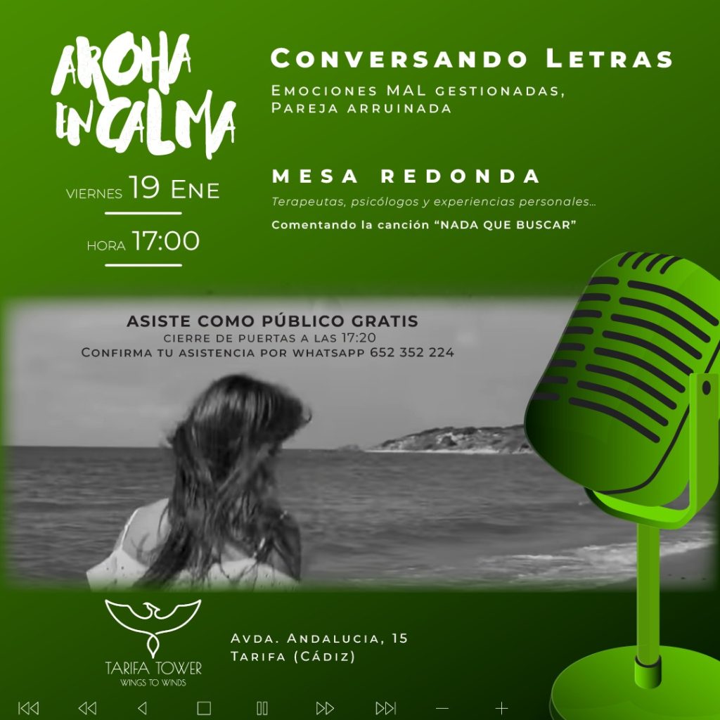 Nueva grabación de “Conversando letras de Aroha en Calma”, un programa que explora las relaciones humanas de una manera diferente e interactiva y a la que te puedes sumar como público. Plazas gratuitas limitadas.