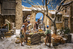 El belén instalado en el Mercado Hotel Garrido ha sido realizado por la Asociación Oro, Incienso y Mirra, cuyo nombre ya anticipa el profundo simbolismo de su trabajo. La asociación vuelve a demostrar una extraordinaria sensibilidad artística y humana, poniendo en valor el belenismo como patrimonio cultural vivo.