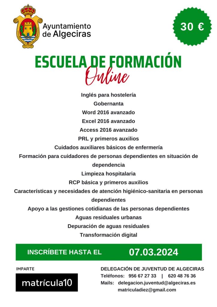 El concejal delegado de Juventud, Francisco Javier Arango Mejías, ha informado de que el Ayuntamiento ha abierto el plazo de inscripción de los cursos de enseñanza online que oferta a través de la empresa Matrícula 10.