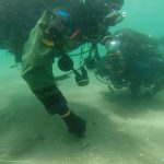 Guardias Civiles del Grupo de Especialistas en Actividades Subacuáticas (GEAS) de la Comandancia de Algeciras junto a miembros del Centro de Arqueología Subacuática (CAS) han extraído de una playa de Puente Mayorga dos ánforas del Siglo I-II.