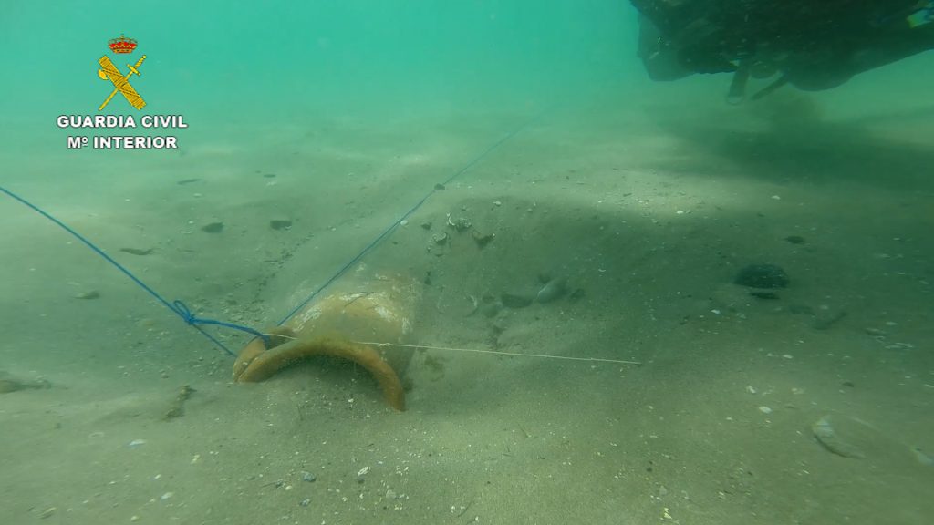 Los especialistas de la Guardia Civil se desplazaron a la zona e iniciaron una búsqueda por el área indicada por el buceador, hallando finalmente dos ánforas semienterradas.