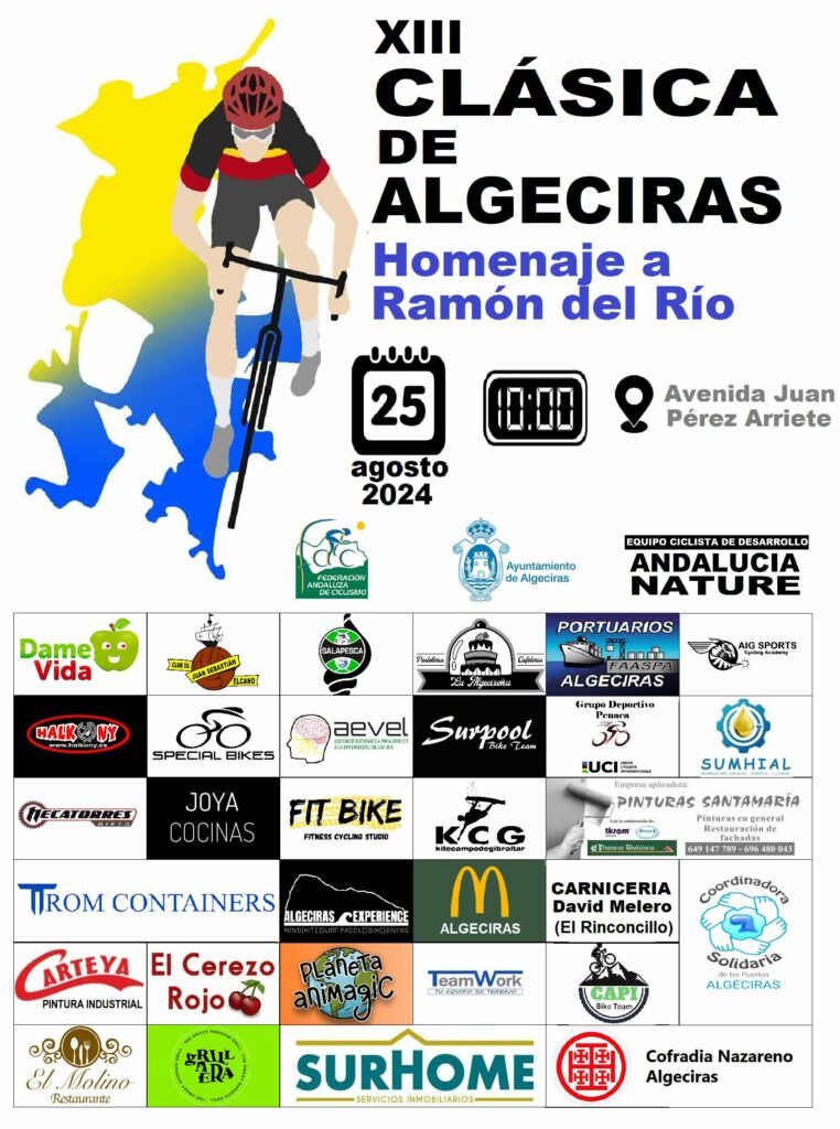 Como cada verano llega una nueva edición de la tradicional Clásica de Algeciras, y ya van trece. La carrera ciclista veraniega que cada año nos trae el club ciclista Andalucía Nature junto con la Delegación de Deportes del Ayuntamiento de Algeciras y la Federación Andaluza de Ciclismo nos brindará un espectáculo deportivo que reúne siempre a los mejores ciclistas del panorama andaluz. Será el domingo 25 de agosto cuando los aficionados viviran una jornada de puro ciclismo viendo a los mejores equipos de Andalucía. El cartel ya ha salido a la luz y el club ciclista Andalucía Nature aprovecha para agradecer a cada una de las empresas y organismos que hacen posible la prueba.
