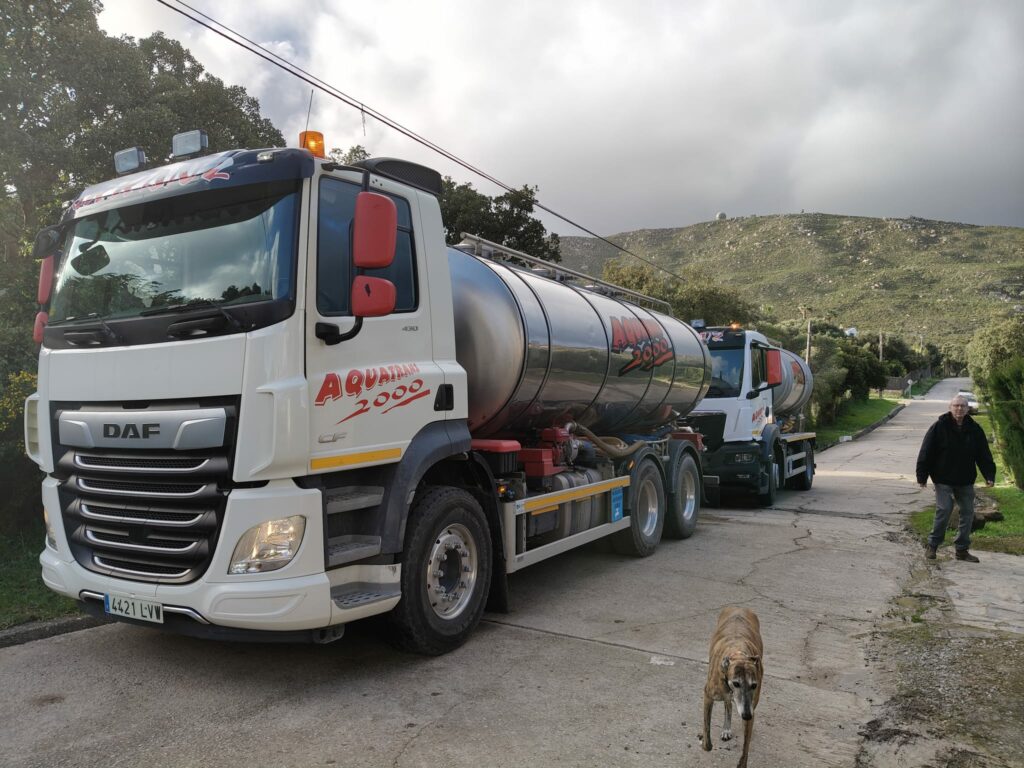 Ayer por la tarde, tras la denuncia de los vecinos, la empresa Aqualia empleó dos camiones para llenar el depósito general, que no ha servido de mucho, ya que esta mañana tampoco había agua en los grifos. ¿Dos camiones para una urbanización con doscientos chalets y 35 apartamentos? Esta mañana ya no había agua para nadie, ya que la mayoría de las casas tienen depósitos que se han vaciado estos días atrás y en cuanto han repuesto el suministro el agua se la ha llevado los depósitos.