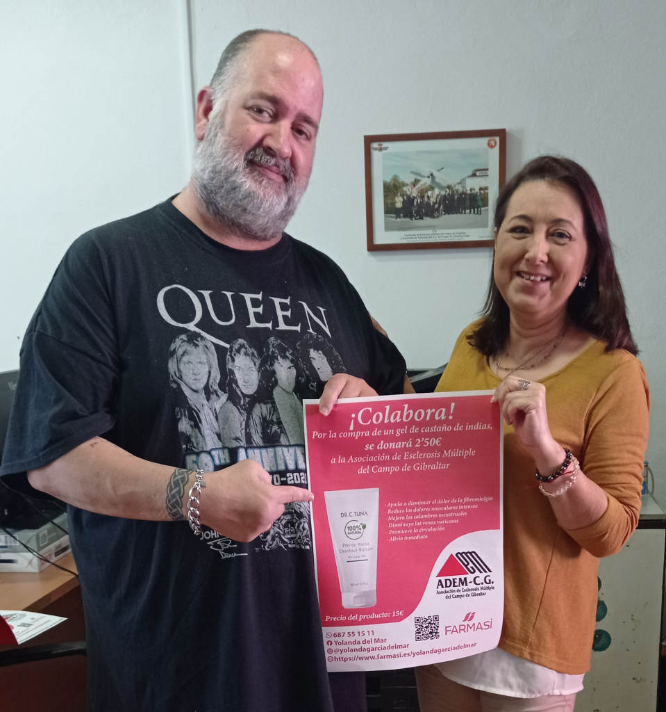 La Asociación de Esclerosis Múltiple del Campo de Gibraltar (ADEM-CG), gracias a la colaboración de Yolanda García del Mar, ha puesto en marcha una campaña solidaria, por la que donará una parte de los beneficios de la venta del producto “Gel de Castaño de Indias” de Farmasi, a la mencionada asociación.