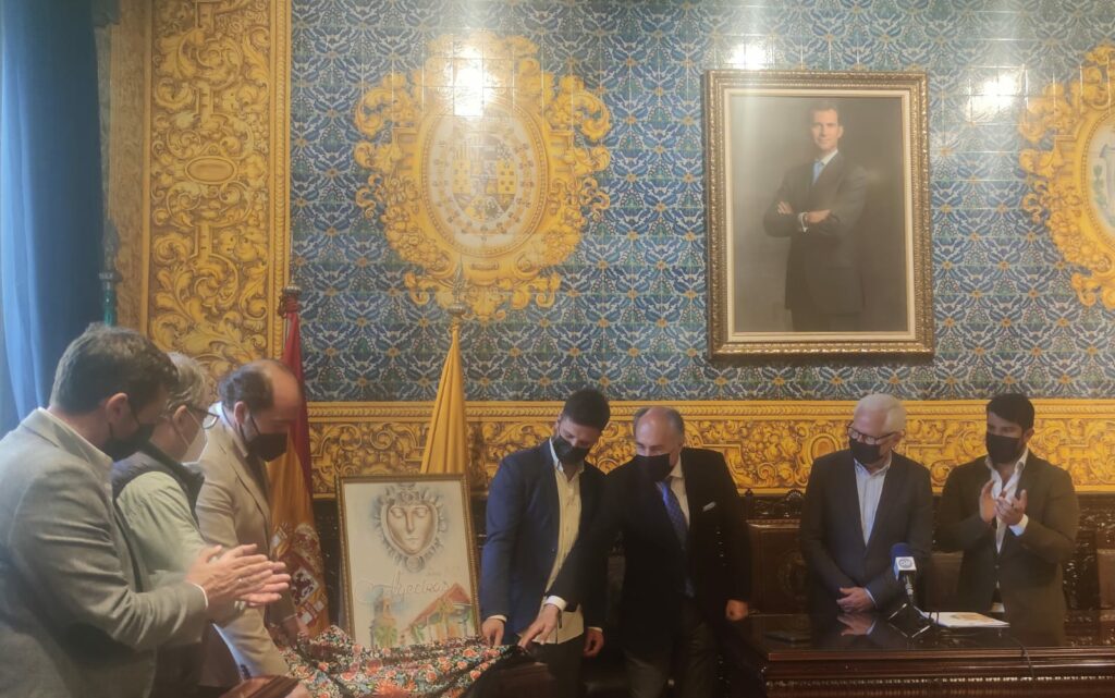 El primer edil ha estado acompañado del primer teniente de alcalde, Jacinto Muñoz; del teniente de alcalde delegado de Deporte, Javier Rodríguez Ros; del concejal delegado de participación Ciudadana, Jorge Juliá; del hermano mayor de la hermandad, Javier Vega; del presidente del Consejo Local de Hermandades y Cofradías, Manolo Delgado; y el autor del cartel, Juan Sierra.