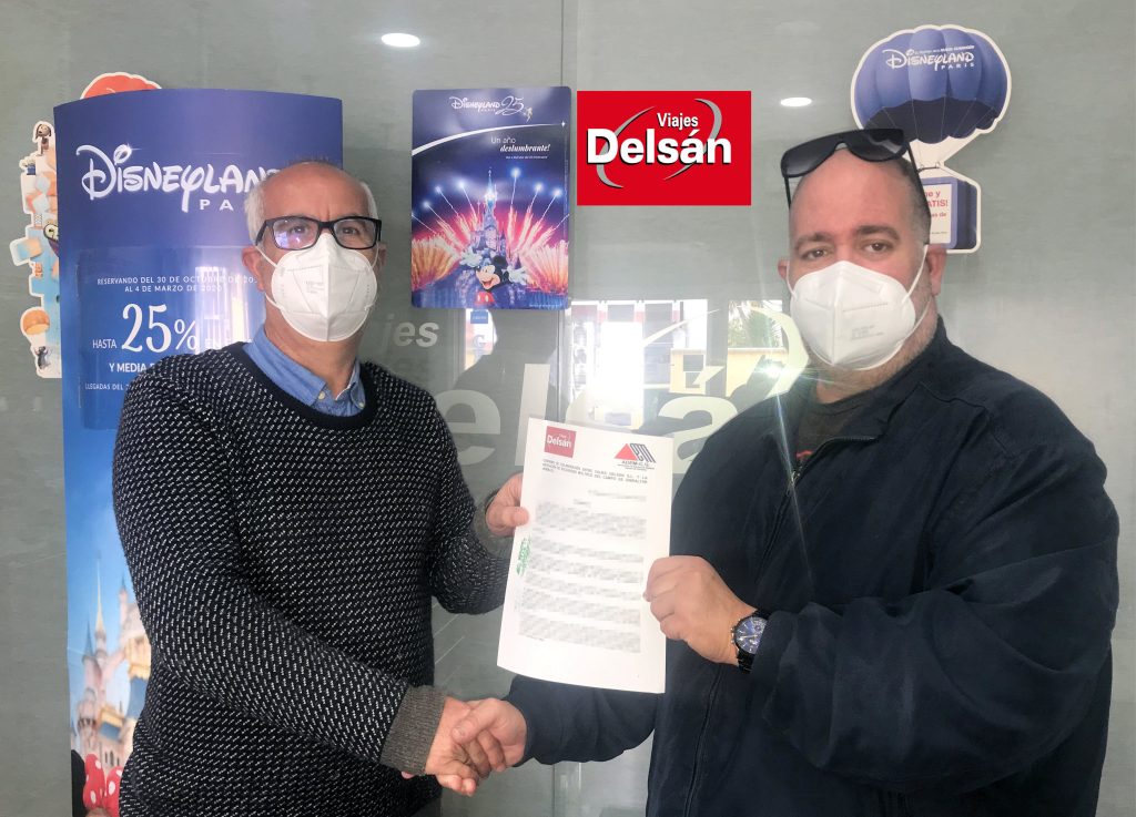 Por parte de Viajes Delsán S.L., D. Juan Carlos Carrión y el Presidente de ADEM-CG, D. Javier Cózar Rosano, han firmado un convenio de colaboración, por el cuál, las personas asociadas de esta asociación campogibraltareña que acudan a la mencionada agencia, situada en la Calle Fragata nº 4 en Algeciras, podrán beneficiarse de la promoción más adecuada y conveniente, en el momento de adquirir el paquete o producto.