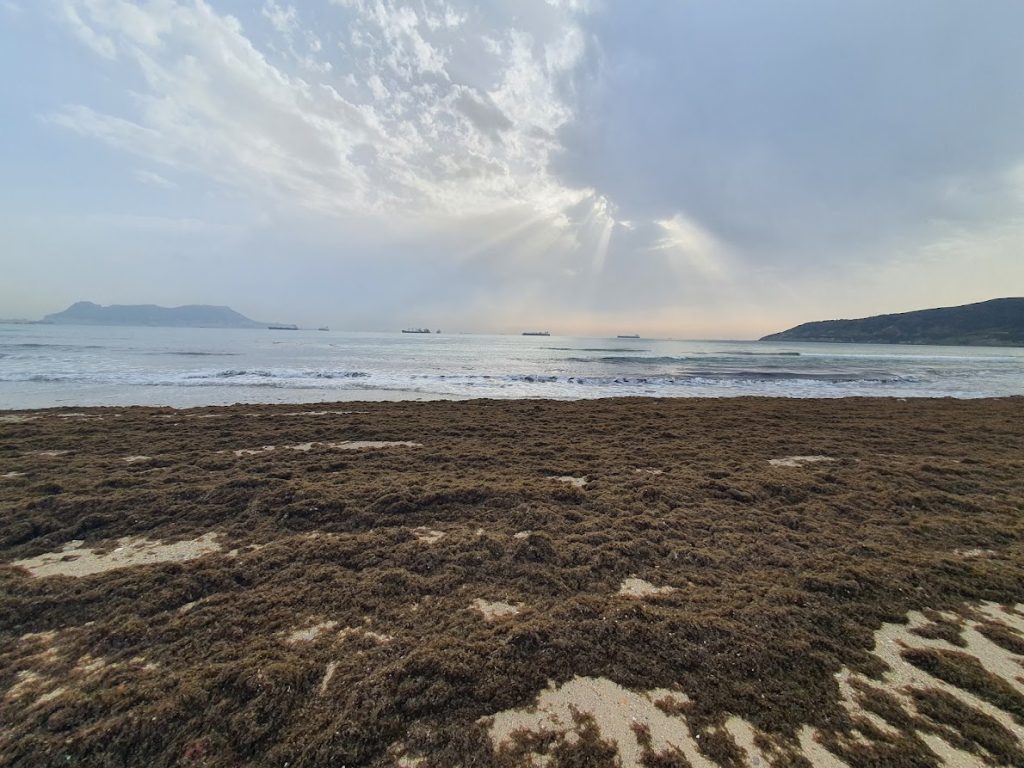 Ayer veíamos las playas de los Caños de La Meca con decenas de toneladas de arribazones de alga Rugulopterix okamurae y podemos asegurar que este alga asiática amenaza toda la costa como una «marea negra» disfrazada de verde.