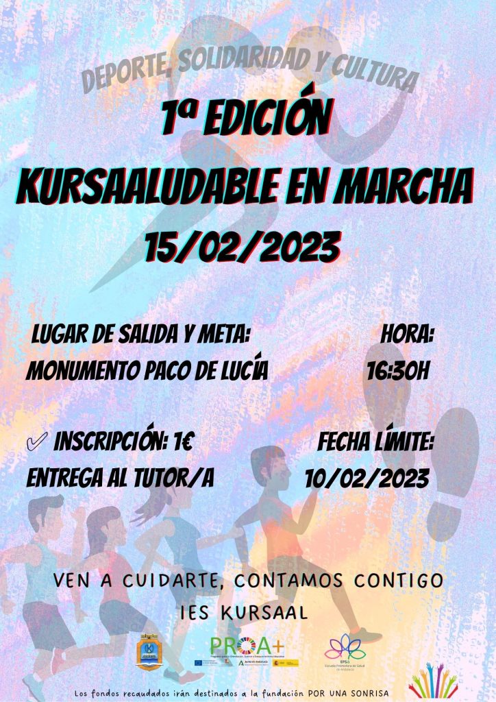 El instituto IES Kursaal de Algeciras acreditada como ESCUELA PROMOTORA DE SALUD convoca para toda su comunidad educativa la actividad “Kursaaludable en marcha”.