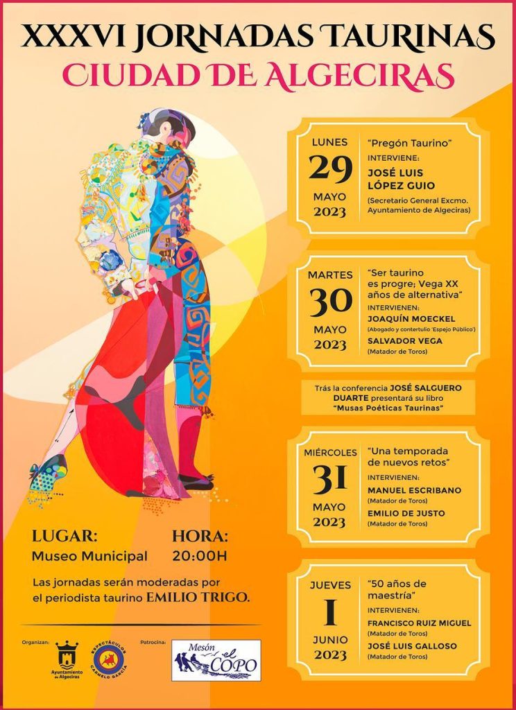 El próximo lunes, día 29, a las ocho de la tarde y en el claustro del Museo Municipal, arrancarán las XXXVI Jornadas de Tauromaquia “Ciudad de Algeciras”, que organizan la Delegación de Feria y Fiestas del Ayuntamiento y la empresa Espectáculos Carmelo García, concesionaria de la plaza de toros “Las Palomas”.