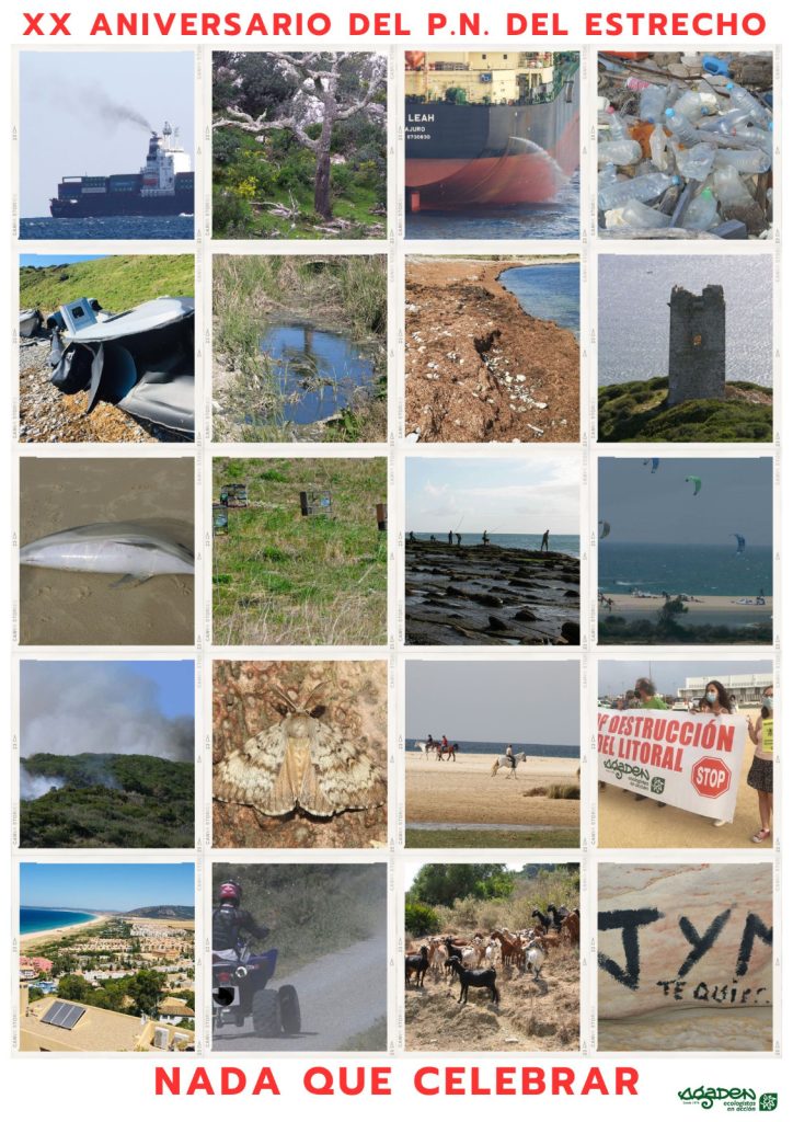 Así mismo, la demanda desde hace años de la organización ecologista, de que la Oficina del Parque esté en el territorio que le corresponde, vuelve a surgir a la luz. Para AGADEN-EA no tiene sentido como el personal que trabaja directamente para el parque natural, se encuentre en una localidad a más de 100km de él. En señal de protesta, los ecologistas no asistirán al acto ya que consideran que no hay nada que celebrar, así como esperan que tanto la Junta de Andalucía como los Ayuntamientos cuyos territorios se encuentran dentro del Parque Natural del Estrecho, reaccionen y realicen menos fiestas, pues ya son dos décadas de dejadez.