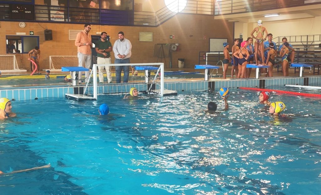 El teniente de alcalde delegado de Deporte, Jorge Juliá, acompañado de los concejales delegados de Coordinación, Vicente Palomares, y de Emalgesa, Álvaro Márquez, ha acudido a las Jornadas Municipales de Actividades Acuáticas 2023/2024 en el Polideportivo ‘Ciudad de Algeciras – Doctor Juan Carlos Mateos’.