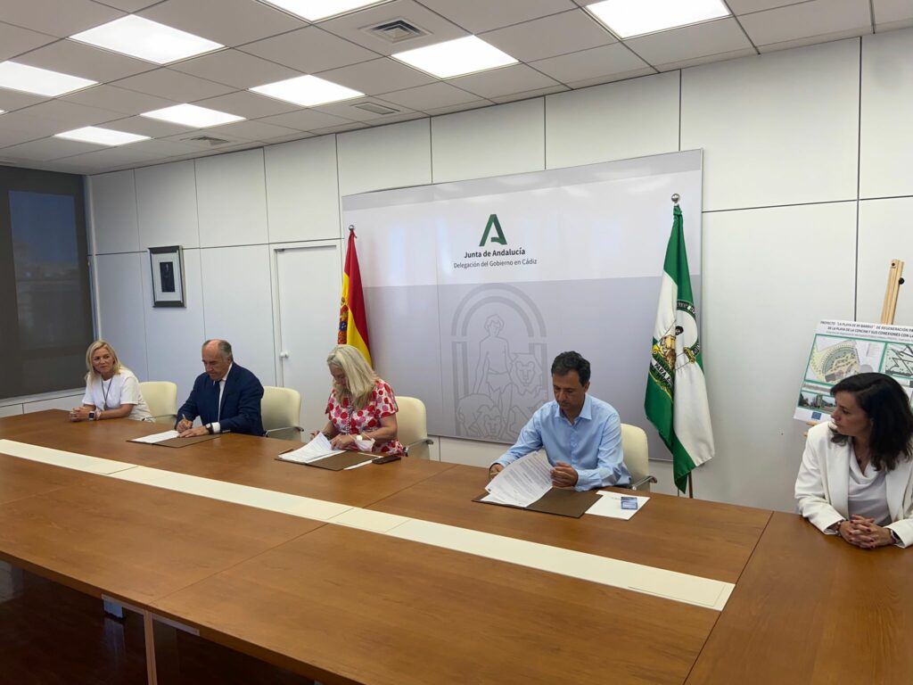 El alcalde, José Ignacio Landaluce, y la delegada del Gobierno de la Junta de Andalucía en la provincia de Cádiz en funciones, Mercedes Colombo, han firmado esta mañana el convenio de colaboración que permitirá el desarrollo del proyecto “La playa de mi barrio”, lo que supondrá la recuperación integral de la zona de La Concha y su entronque ambiental con San José Artesano.