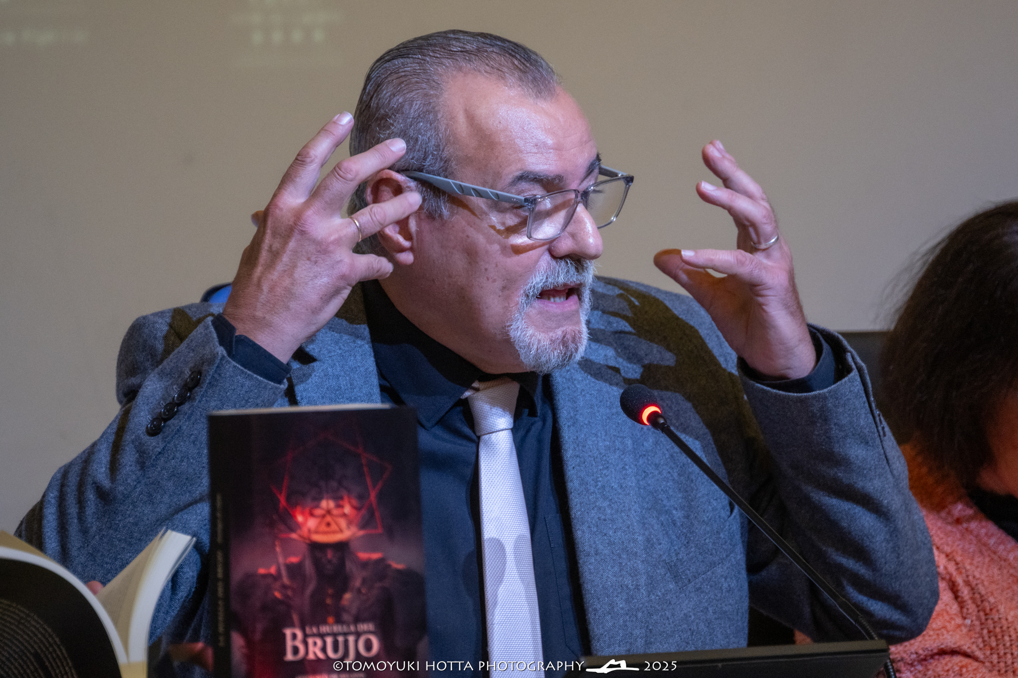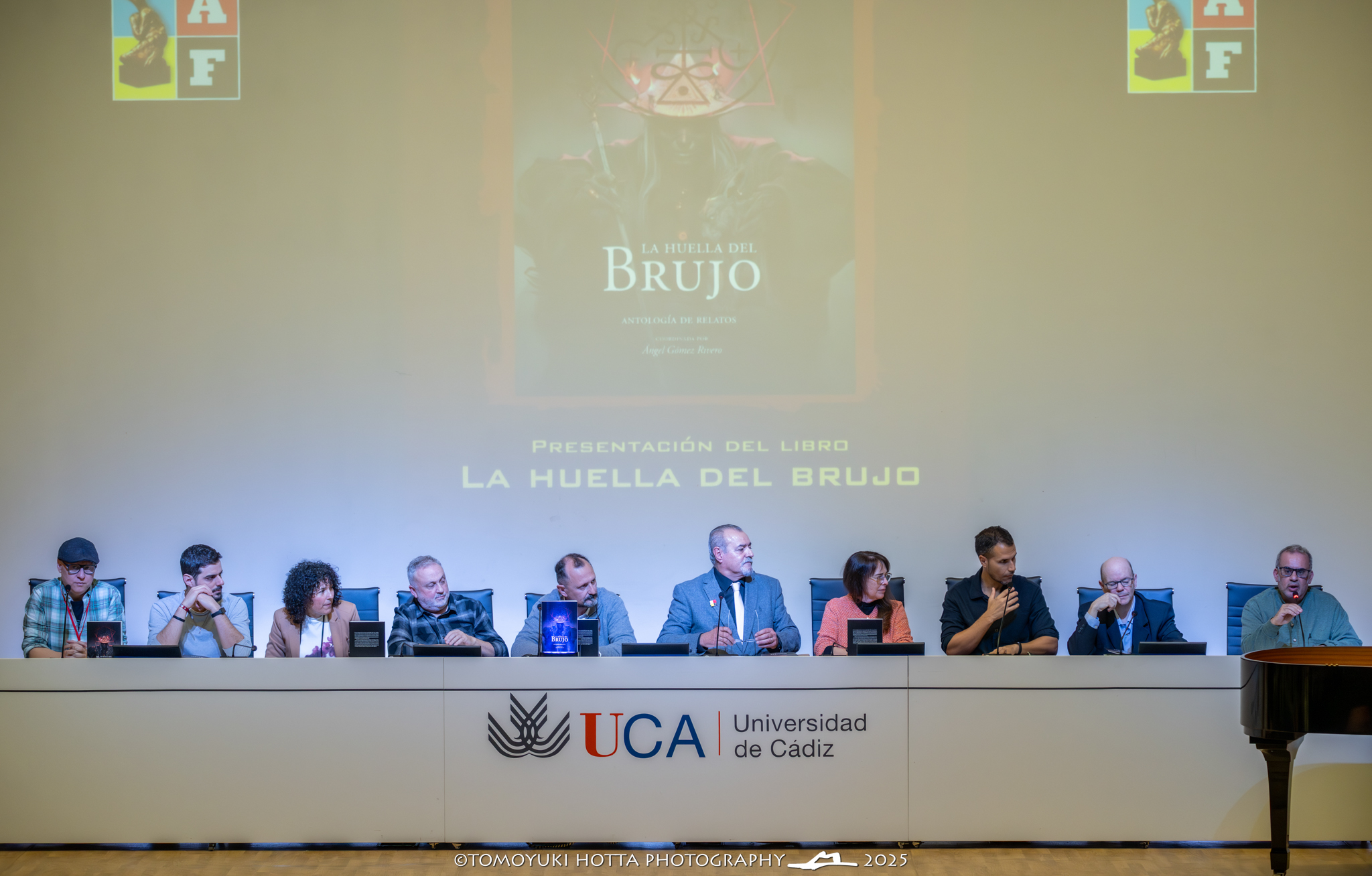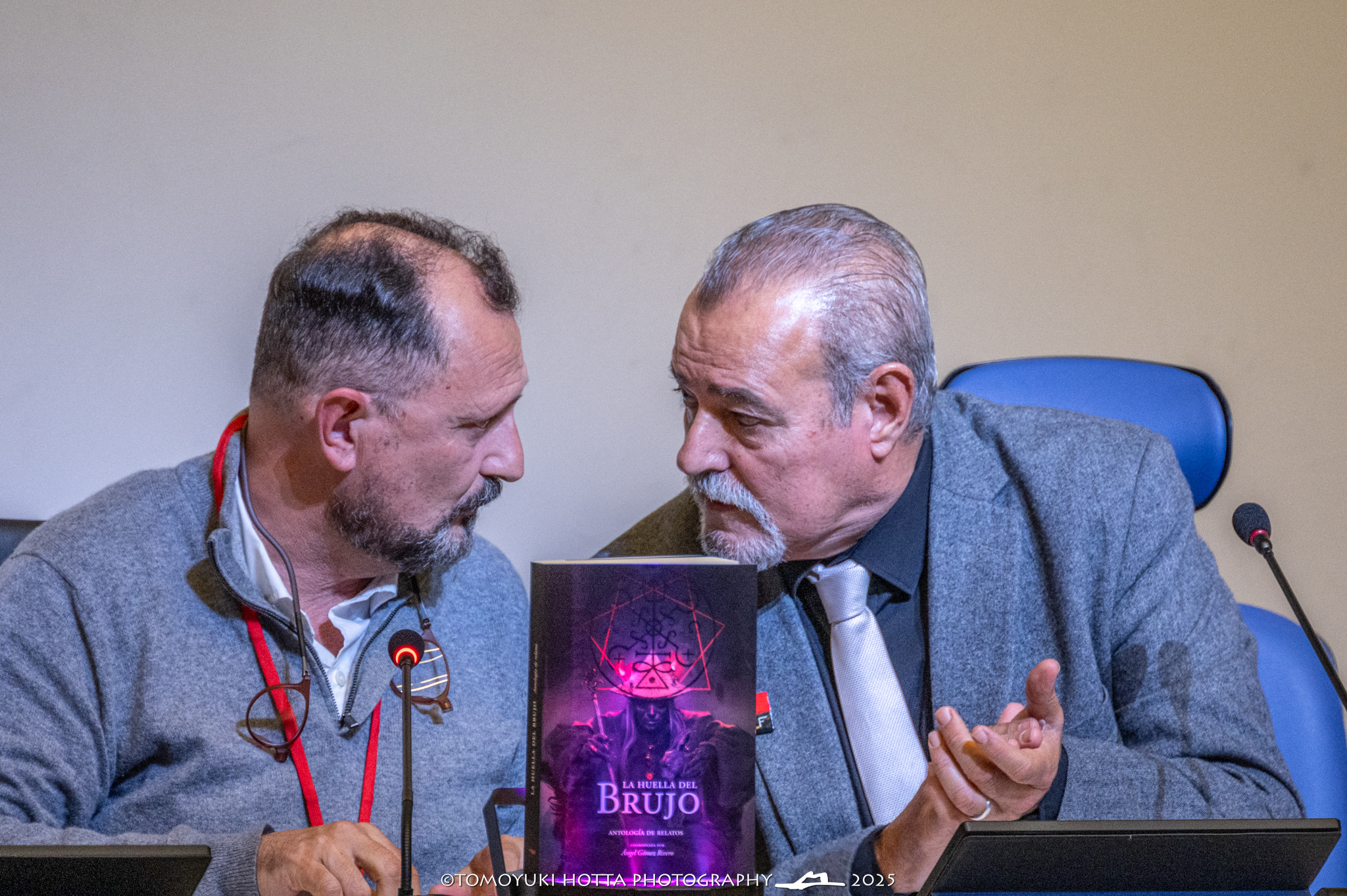 La jornada cultural continuó con otro de los actos destacados de esta edición: la presentación de la antología “La huella del brujo”, una recopilación de relatos de diversos autores, también coordinada por el director del certamen, Ángel Gómez Rivero. La teniente de alcalde delegada de Cultura asistió al evento, en el que participaron los escritores incluidos en el volumen y el Místico de Honor 2025, el escultor José Orrego, quien recibirá oficialmente su reconocimiento en la clausura del festival.