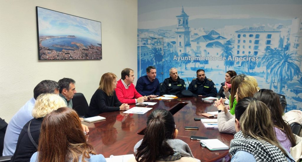 Campo de Gibraltar, EEI El Faro, CEE Virgen de la Esperanza, EEI Manuel Tinoco, y CEPR Juan Sebastián Elcano; representantes de la Policía Local; y la gerente y secretaria general de Apymeal, Vanessa Lara Medina.