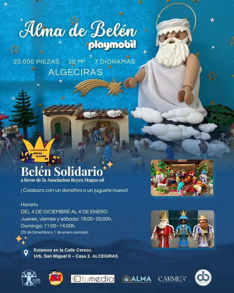 “Alma de Belén Playmobil” es una iniciativa impulsada por varias entidades locales, entre ellas Alma, Carmen, Ars Arte, Tumedio y otros colaboradores, que han unido esfuerzos para ofrecer a la ciudad un punto de encuentro navideño donde la magia, la familia y la solidaridad se dan la mano.