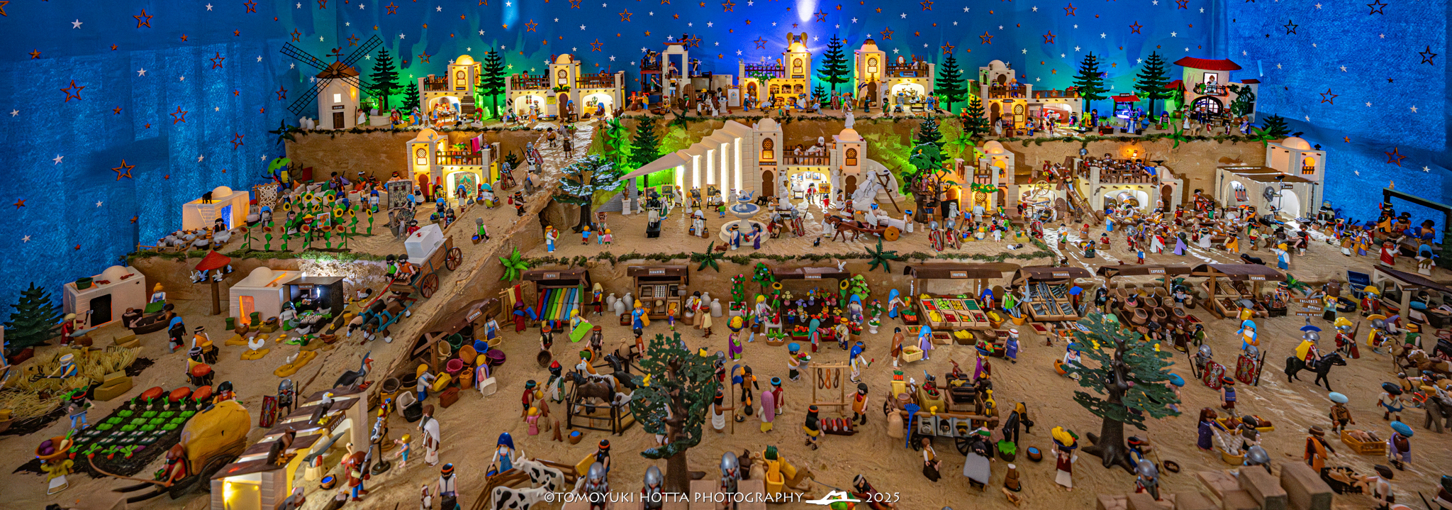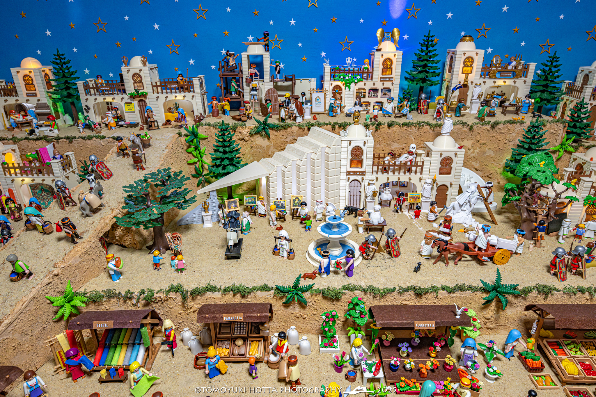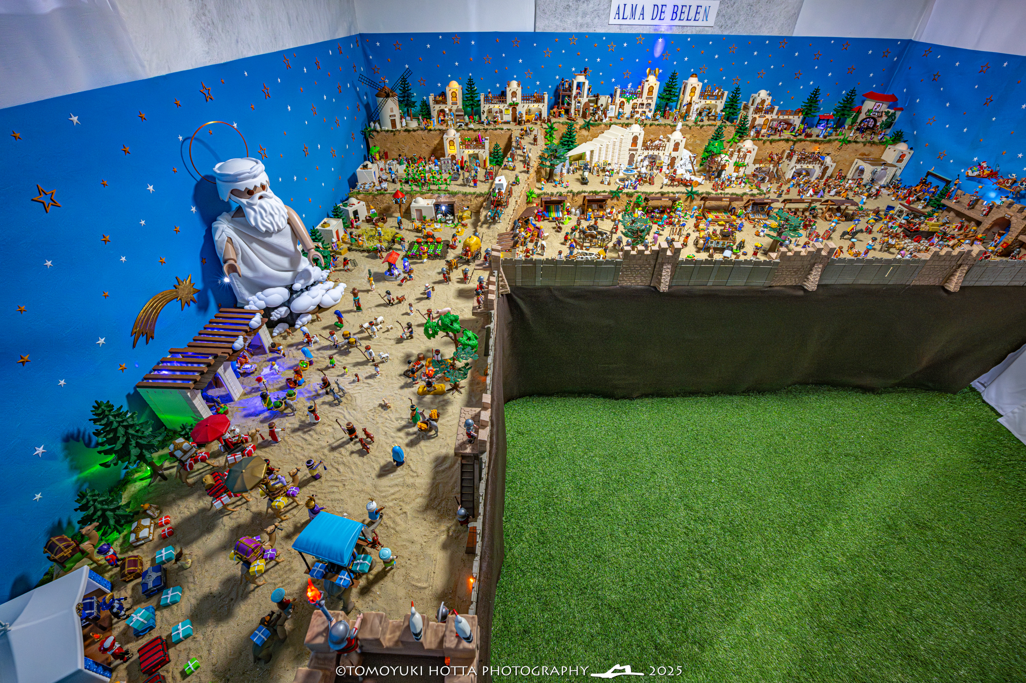 Algeciras vuelve a sumarse a la Navidad con una propuesta mágica y solidaria: “Alma de Belén Playmobil”, una espectacular muestra formada por más de 20.000 piezas, repartidas en 7 dioramas y ocupando 30 metros cuadrados de montaje. Las fotografías del evento, realizadas por Tomoyuki Hotta, capturan con maestría cada detalle de esta obra que combina creatividad, artesanía y espíritu navideño.
