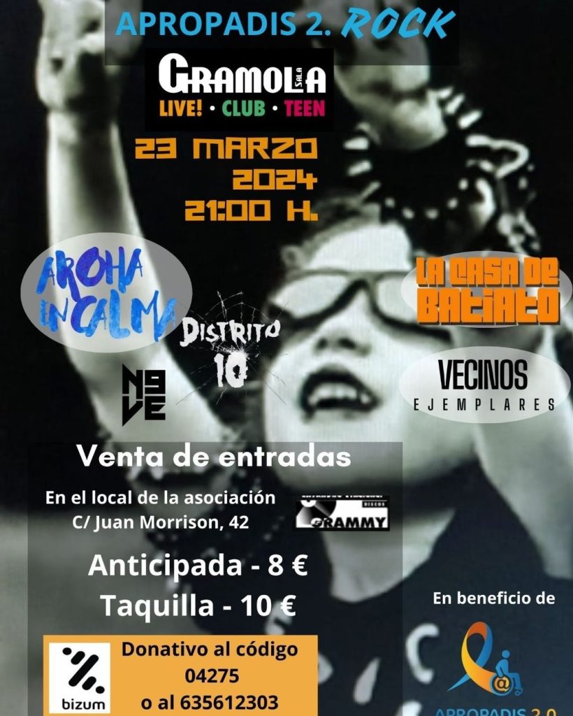 La Sala Gramola acoge APROPADIS 2.ROCK, concierto solidario en favor de las personas con discapacidad. Desde el grupo y desde Apropadis se invita a disfrutar de una magnífica noche de buena músíca por la inclusión de las personas con discapacidad.