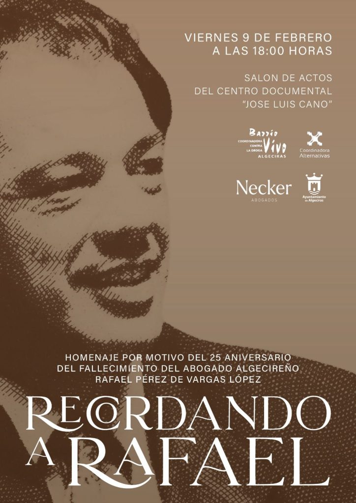 El acto, “Recordando a Rafael”, que se desarrollará a partir de las seis de la tarde en el Centro Documental José Luis Cano, cuenta también con la organización del bufete Necker Abogados y la colaboración del Ayuntamiento de Algeciras.