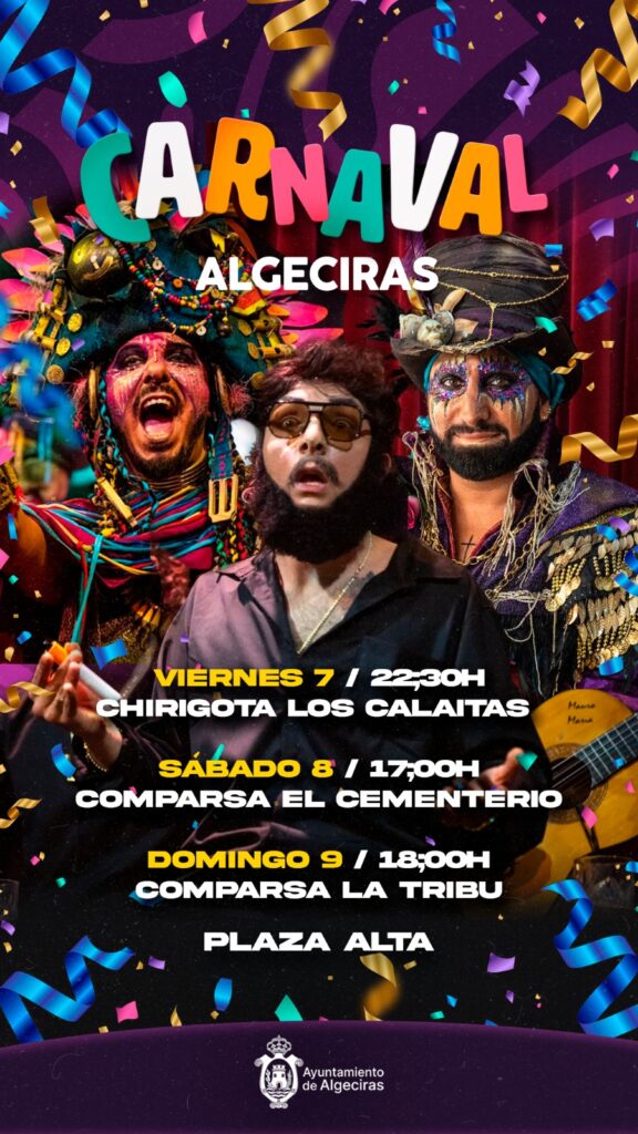 Ya el sábado día 8 comenzará la jornada a las 13:30 horas con la chirigota del Tini, a las 14:00 horas será el turno de la comparsa del Rizo, a las 17:00 horas llegará la comparsa ‘El Cementerio’, a las 18:00 horas le sucederá la compasa de Joselito, a las 18:30 horas actuará la chirigota de Yeyo, para las 19:00 horas dejar paso a la chirigota de Las Niñas, finalizando este sábado de Carnaval Especial a las 19:30 horas con la comparsa de África.