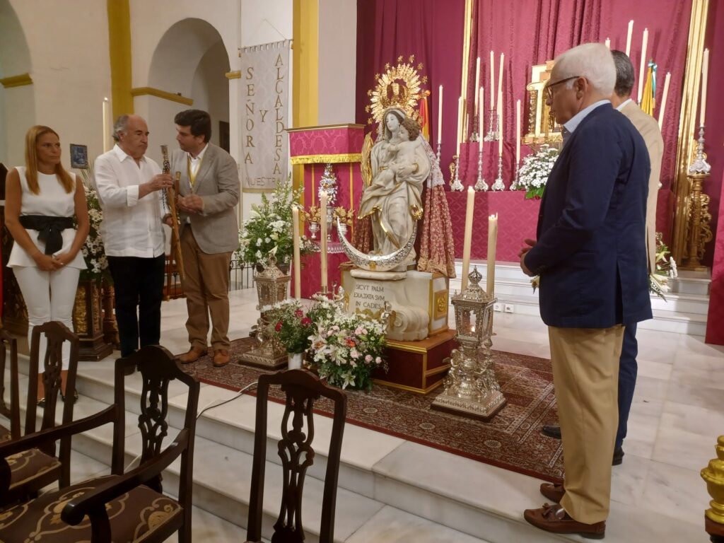 El alcalde, José Ignacio Landaluce, recibió ayer por la tarde de vuelta el bastón de mando de la ciudad que el pasado día 13 entregase él mismo a la Patrona y Alcaldesa Perpetua de Algeciras para que lo portase tanto en su paso procesional como durante el mes de agosto.