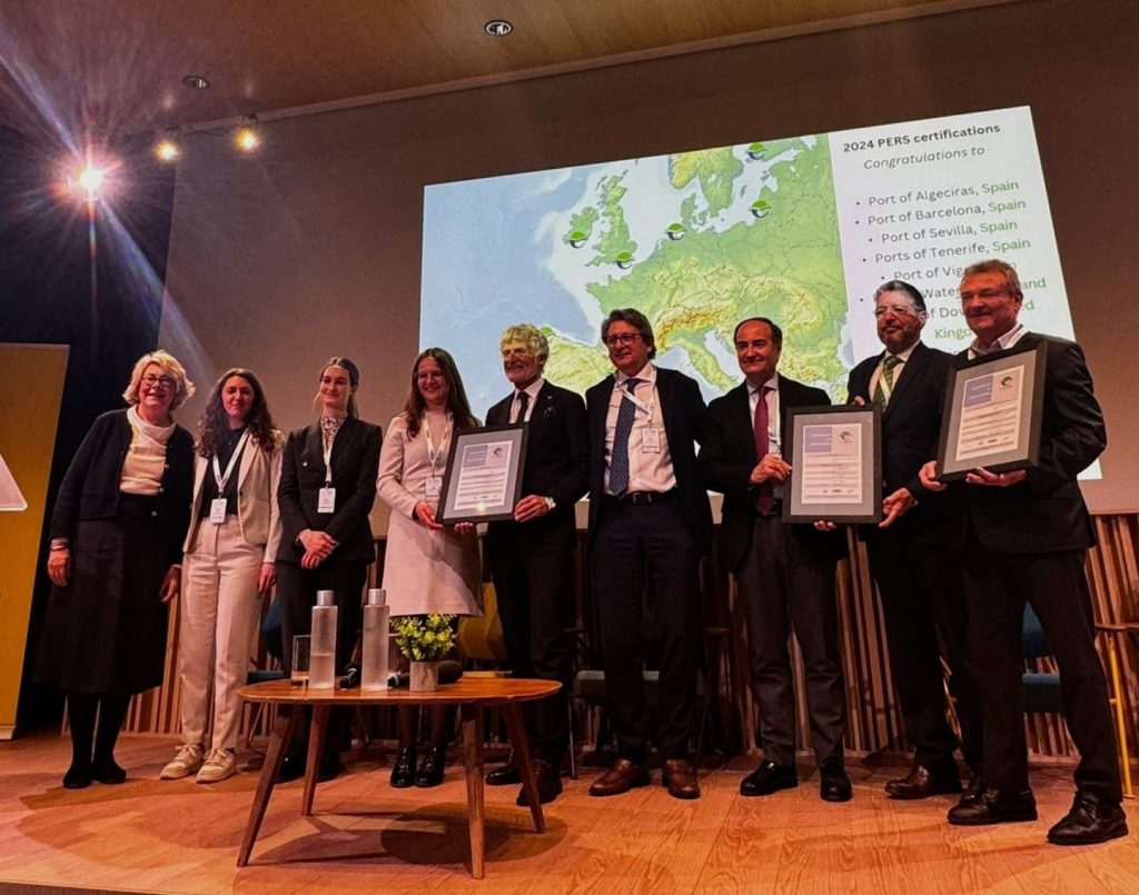 Hoy el presidente y el director general de la Autoridad Portuaria de Algeciras, Gerardo Landaluce y José Luis Hormaechea, respectivamente, han recogido la certificación de manos de la secretaria general de la Organización, Isabelle Ryckbost; el presidente de ESPO, Zeno D´Agostino; y Anaëlle Boudry, Coordinadora de EcoPorts.