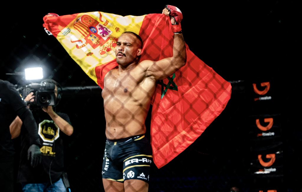 En cuanto a nombres propios destacada el de Abdellah ‘David’ Er-Ramy. El marroquí, de 26 años y residente en Málaga, estaba ante su gran alternativa. Vivía su primer main event en AFL ante el veterano Evasio D’Onofrio. Luchador en ascenso contra luchador bregado. Duelo clásico que podría catapultar a Er-Ramy, como sucedió. El ‘Golden Boy’, que es campeón de España de kickboxing, salió a cruzar golpes y con su primera derecha envió al suelo a su oponente. Tenía la pelea de cara y no lo desaprovechó, logrando la parada del árbitro gracias a numerosos golpes en el ground and pound. El luchador corrió a celebrarlo con su afición y es que desde Málaga se llegaron a fletar autobuses. Er-Ramy es un fenómeno de masas.