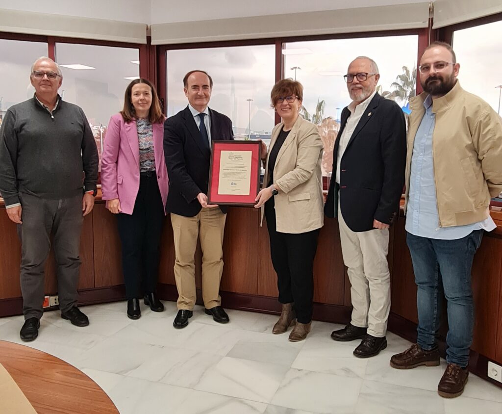 La presidenta y el vicepresidente de la Coral Portus Albus de la Sociedad Algecireña de Fomento (SAF), Carmen Benítez y José Luis Sanz, respectivamente, acompañados de su director musical, José Antonio Sánchez, han entregado al presidente de la Autoridad Portuaria de Algeciras (APBA), Gerardo Landaluce, el nombramiento de la institución portuaria como socio de honor, decisión aprobada días atrás por la junta directiva del colectivo cultural “por contribuir al desarrollo de la actividades culturales y musicales”.