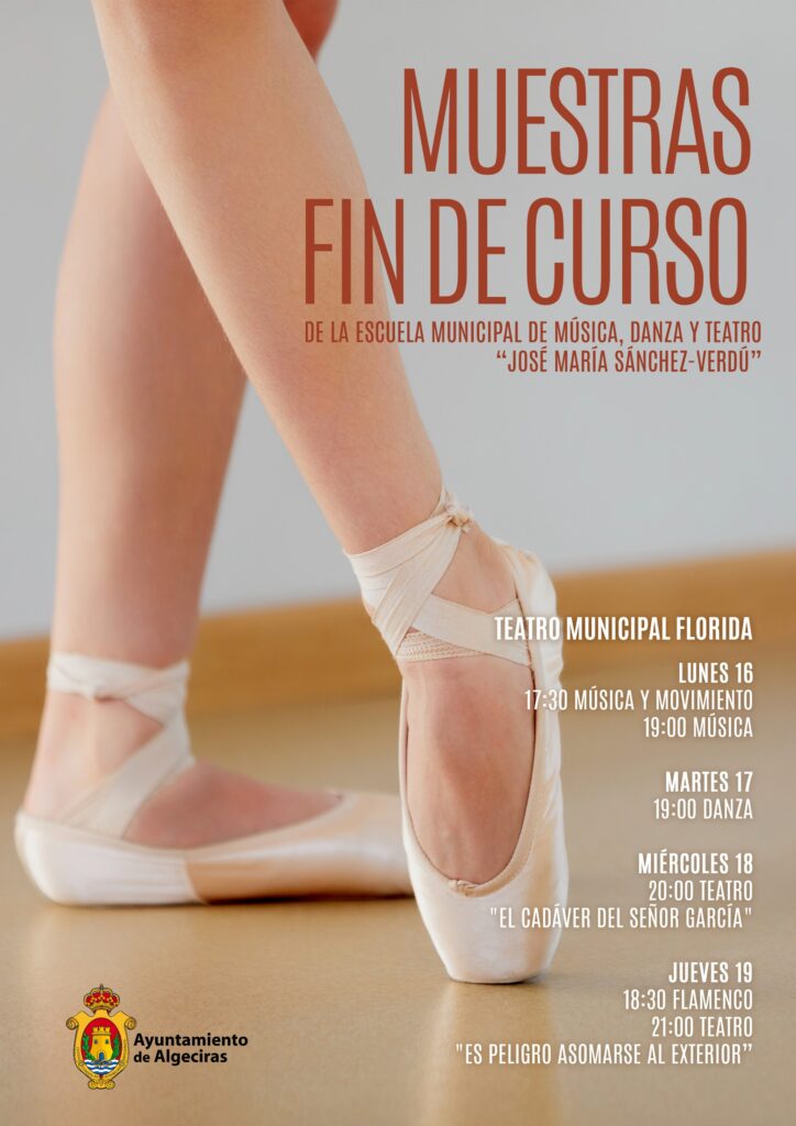 Así, el lunes 16 de junio a las cinco y media de la tarde tendrá lugar la actuación del grupo de ‘Música y Movimiento’, mientras que a las siete de la tarde será el turno del área de ‘Música’. El martes 17 de junio, a las siete de la tarde, se celebrará la muestra del aula de ‘Danza’. El miércoles 18 de junio, a las ocho de la tarde, el aula de ‘Teatro’ representará la obra ‘El cadáver del señor García’. Para finalizar, el jueves 19 de junio se presentará, a las seis y media de la tarde, la muestra del área de ‘Flamenco’, y a las nueve de la noche, el grupo de ‘Teatro’ pondrá en escena la obra ‘Es peligroso asomarse al exterior’.