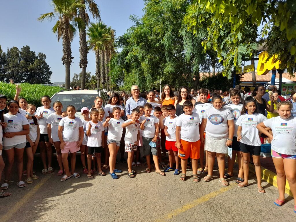 El Presidente de la Mancomunidad, Juan Lozano, junto a las vicepresidentas Jessica Barea y María Manella, han acompañado en el día de hoy a los menores participantes en el campamento de verano organizado por la Asociación Nakera Romi, miembro de la Federación de Mujeres Andaluzas Fakali.