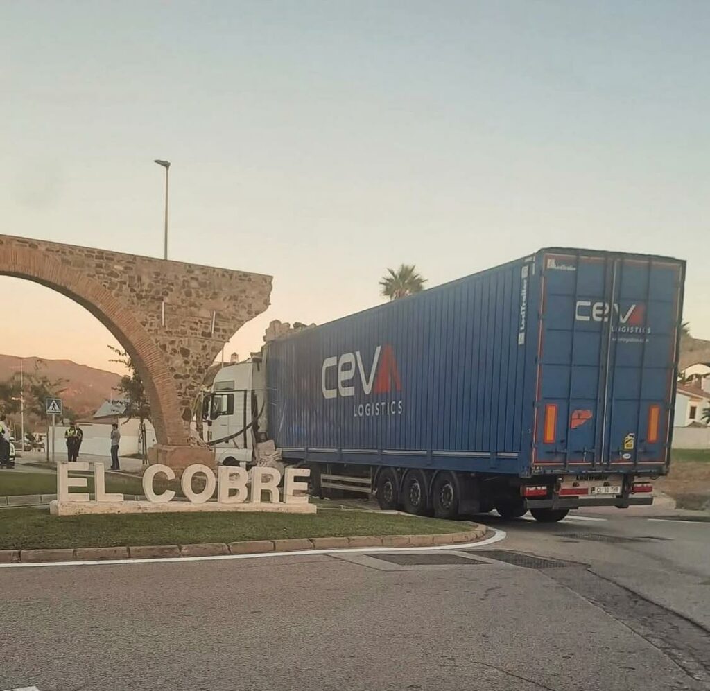 El vehículo de gran tonelaje impactó contra la estructura al intentar maniobrar en la rotonda de acceso a la barriada. Un camión de gran tamaño ha provocado en la tarde de este miércoles un aparatoso accidente en la barriada de El Cobre, en Algeciras, tras impactar contra uno de los arcos de piedra que adornan la entrada al barrio.
