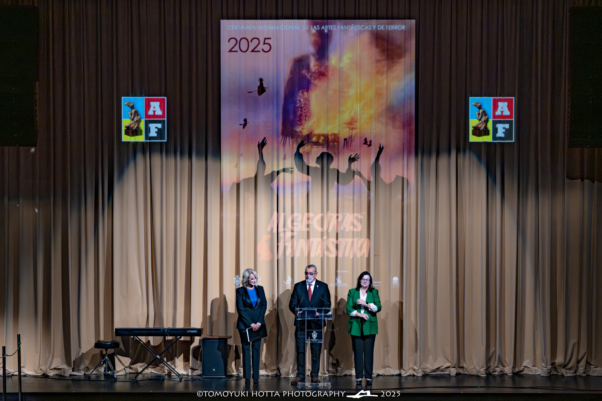 El Teatro Municipal Florida ha sido escenario este lunes de la inauguración de Algeciras Fantástika 2025, el certamen internacional que cada noviembre transforma la ciudad en un punto de encuentro para los amantes del terror, la ciencia ficción y el arte fantástico. En su decimosexta edición, el festival reafirma su papel como una de las propuestas culturales más emblemáticas del Campo de Gibraltar y del panorama andaluz. Fotos Tomoyuki Hotta,
