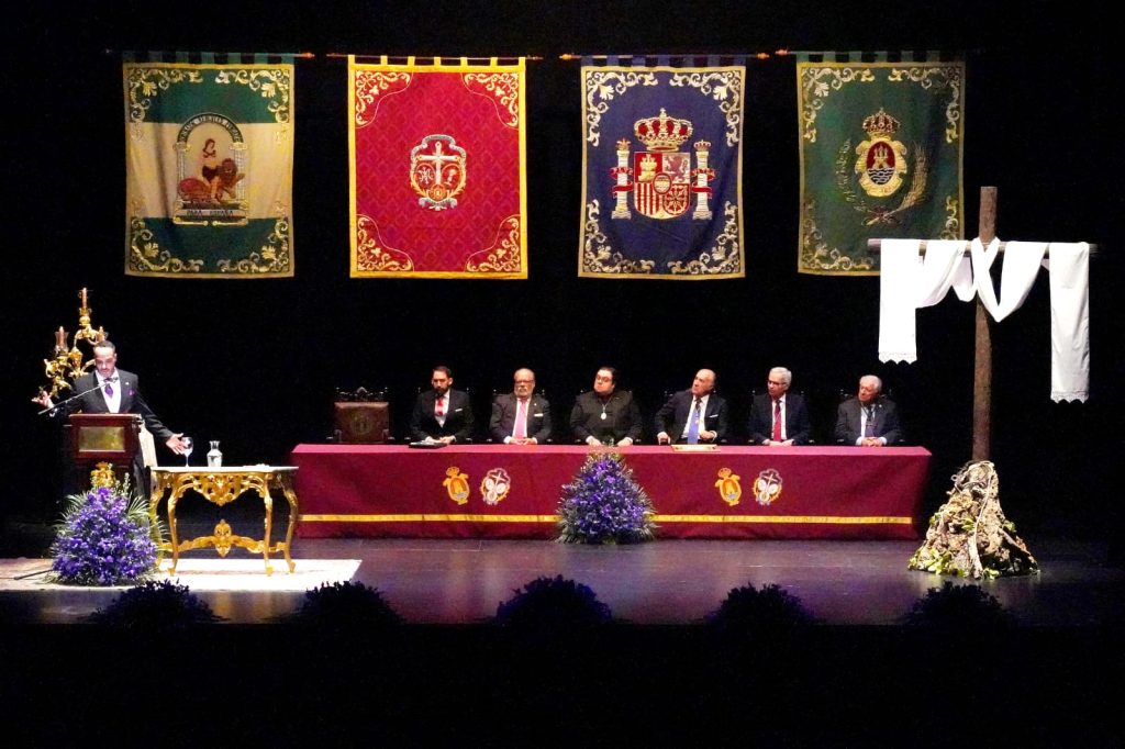 Junto al pregonero han estado el alcalde, José Ignacio Landaluce; el presidente del Consejo Local de Hermandades y Cofradías, Manuel Delgado Cerro; su director espiritual, el sacerdote Rubén Vargas Candón; el primer teniente de alcalde, Jacinto Muñoz Madrid; el hermano mayor de la Sagrada Mortaja, José Rodriguez; y su presentador, el comunicador