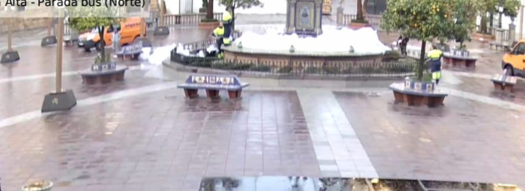 La Policía Local identifica a los tres menores que vertieron líquido lavavajillas en la fuente de la Plaza Alta, gracias a las cámaras de seguridad