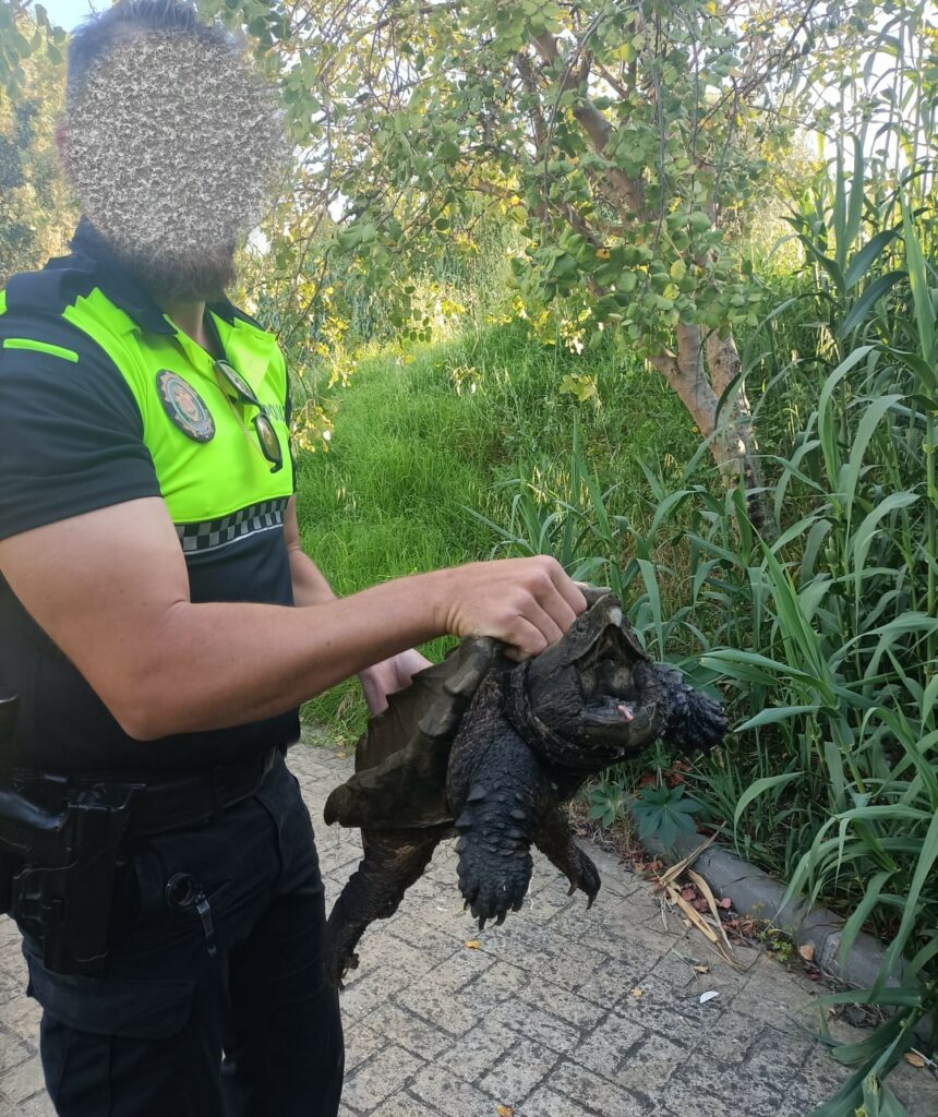 La Policía Local de Algeciras ha rescatado en el parque fluvial del río Pícaro un ejemplar de tortuga caimán de casi medio metro de longitud y quince kilogramos de peso, según ha informado el primer teniente de alcalde y delegado de Seguridad Ciudadana, Jacinto Muñoz Madrid.