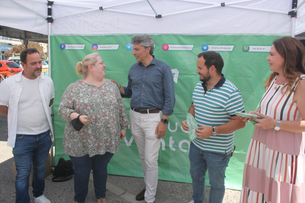 El candidato de Andaluces Levantaos por Cádiz a las Elecciones Autonómicas, Fran Romero, y la número seis de dicha candidatura y portavoz de la Gestora de AxSí en Algeciras, María José Jiménez Izquierdo, han visitado hoy el mercadillo semanal de Algeciras para acercar a los algecireños y algecireñas el proyecto político de esta coalición y para abordar diversos asuntos de actualidad referentes a esta ciudad. Ambos han estado acompañados por varios compañeros de la coalición y por el número once de la candidatura: Daniel Pérez Cumbre, delegado municipal de Cultura y Fiestas del Ayuntamiento de Los Barrios. En primer lugar, Jiménez Izquierdo ha insistido en la necesidad de hacer realidad de una vez por todas el proyecto ferroviario del corredor mediterráneo y atlántico, un infraestructura de comunicación imprescindible para el desarrollo de la zona y para mejorar la competitividad del Puerto de Algeciras.