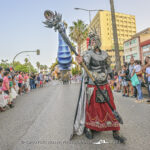 La comitiva partió a las ocho de la tarde desde el acceso central a las instalaciones portuarias, para discurrir por toda la avenida Virgen del Carmen hasta llegar a la Rotonda del Milenio, continuando hasta la portada del Parque Feria, donde dio paso al acto de encendido del alumbrado extraordinario.