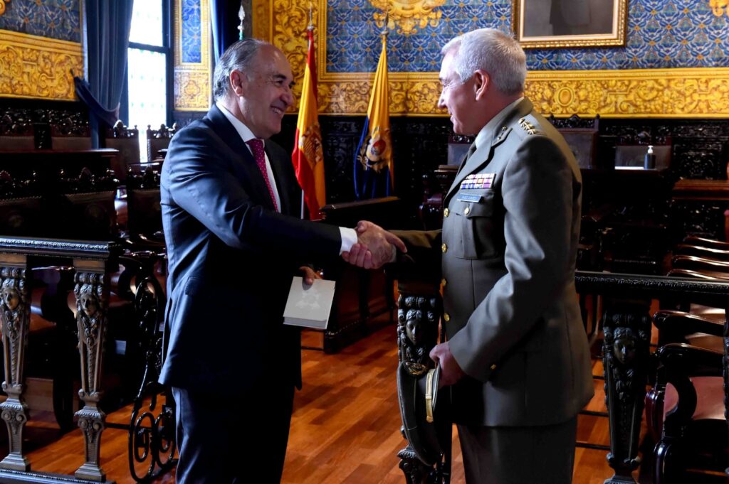 El alcalde, José Ignacio Landaluce, ha recibido en la Casa Consistorial al coronel Julián González Juárez, jefe del Regimiento de Artillería de Costa número 4, con sede en la localidad gaditana de San Fernando, en la que ha sido su primera visita oficial a la ciudad desde que asumiese el mando de la unidad el pasado mes de diciembre.
