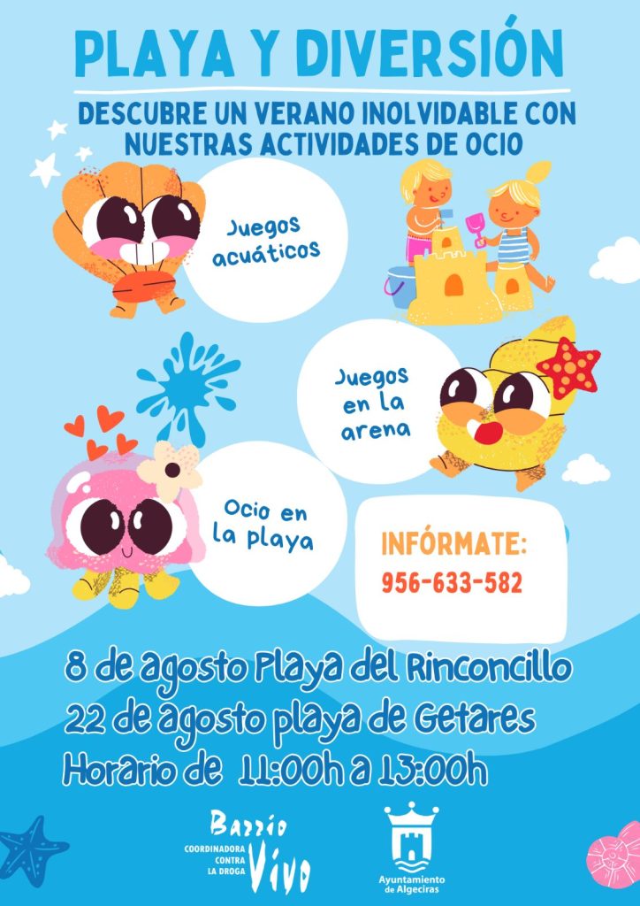 Esta iniciativa, que se repetirá en Getares, forma parte del programa de ocio para la prevención ‘Emociónate’, subvencionado por el Ayuntamiento Las playas de Algeciras van a servir de escenario para distintas actividades organizadas por la coordinadora contra la droga Barrio Vivo con el objetivo de ofrecer alternativas de ocio saludable tanto a niñas y niños como a adolescentes. Esta convocatoria que tendrá lugar mañana martes, día 8 de agosto, en El Rinconcillo se repetirá el próximo día 22 de este mismo mes en la