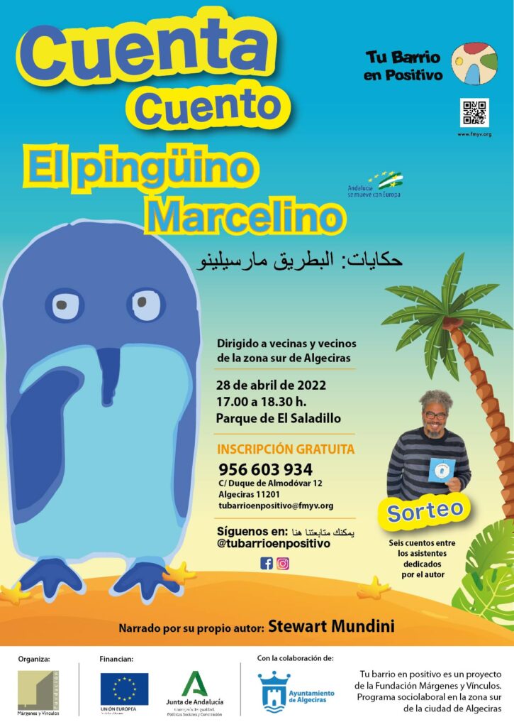 El cuentacuento está dirigido tanto a niñas y niños como a sus madres y padres. Comenzará a las cinco de la tarde y estará a cargo del poeta Stewart Mundini, autor de El pingüino Marcelino, relato principal en la sesión. Habrá un sorteo entre los asistentes de seis ejemplares de El pingüino Marcelino, dedicados por el autor, que narrará otras historias. Todos los relatos han sido seleccionados para fomentar la reflexión en pro de una sociedad más justa y solidaria. También pretende ser una actividad de fomento del ocio y tiempo libre en familia.