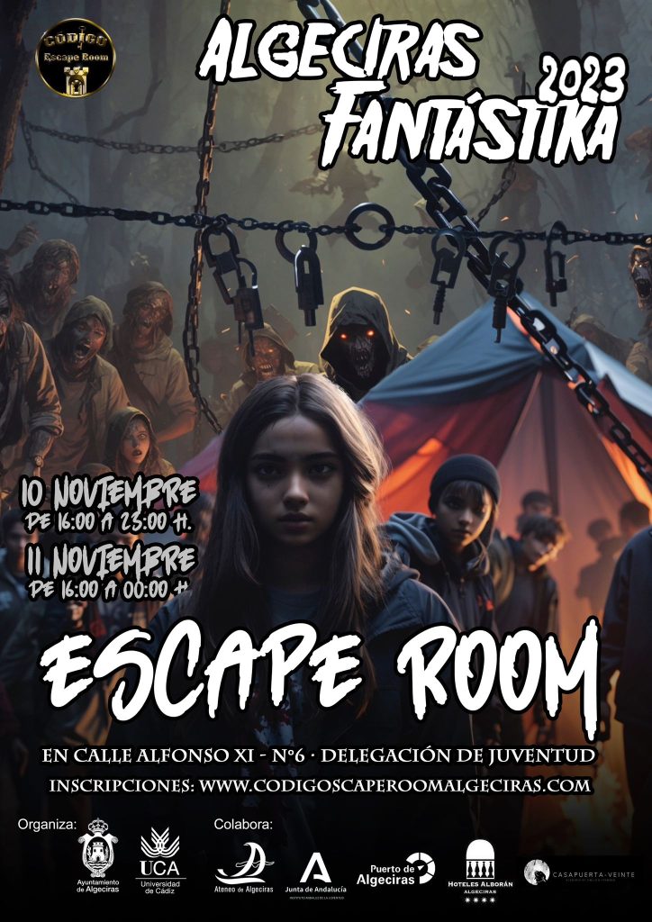 Se llevará a cabo de la mano de ‘Código Escape Room’ el viernes 10 de noviembre de cuatro de al tarde a once de la noche, y el sábado 11 de noviembre, de cuatro de la tarde a las doce de la medianoche, en la Delegación de Juventud, sita en la calle Alfonso XI, 6 (Antiguo Hospital Militar). La inscripción se realizará a través de la página web: www.codigoscaperoomalgeciras.com.
