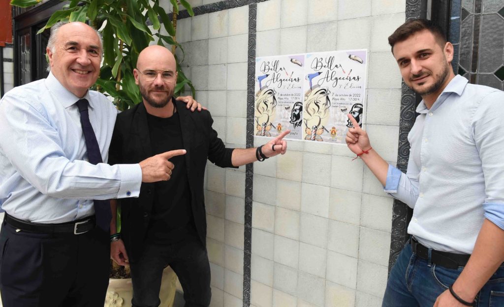 El alcalde de Algeciras, José Ignacio Landaluce, y el concejal delegado de Juventud, Francisco Arango, junto al barbero Rafael Arana, han presentado el cartel de la tercera edición de “BellAlgeciras”, que tendrá lugar en la Plaza Alta el viernes 7 de octubre a las cinco de la tarde.