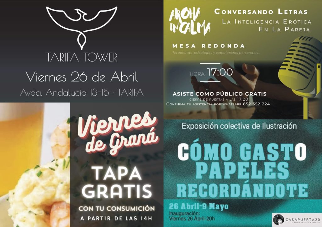Mañana viernes 26 arranca en Tarifa Tower (Avda Andalucía 15) una iniciativa que emula el sistema de tapeo de Granada que tanto gusta, desde las 14.00 h con cada consumición se regala una tapa gratis y la segunda mejor que la primera, así sucesivamente durante todo el día.